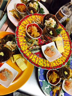 店主が毎日市場に買出しに行く新鮮な素材を、天然出汁で丁寧に調理しています。手作りにこだわり、またお酒と一緒においしくお召し上がりいただける料理をこころがけています。店内メニューだけではなく、お客様のリクエストで即興で作ることも…。グループで来られる方にはお得なコースもご用意しています。